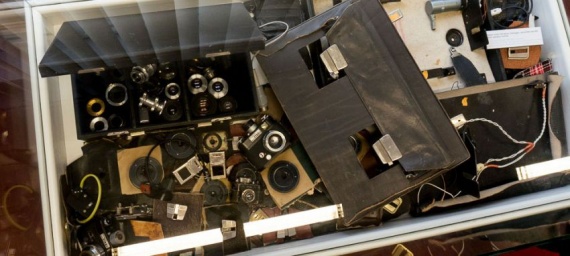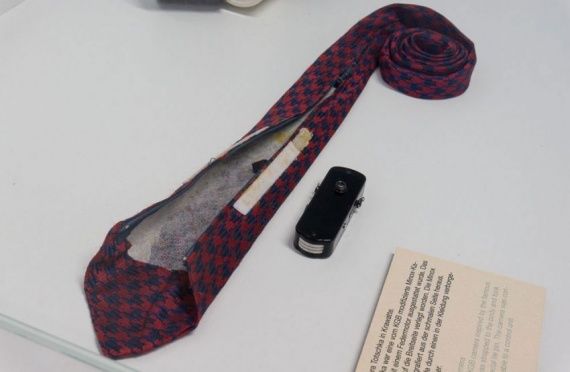 Главное оружие стукача против сограждан — это, конечно, фотосъемка. В музее очень много фототехники. В основном, конечно, шпионы использовали скрытую фототехнику. С виду — обычный плащ: