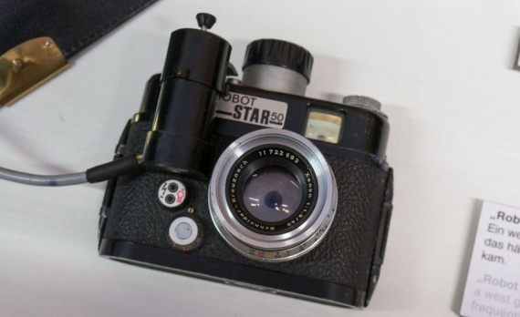 Штази использовала и обычную, коммерческую фототехнику, и самодельную. Вот, скажем, фотоаппарат, бывший весьма популярным среди технарей-сексотов, Robot Star 50: