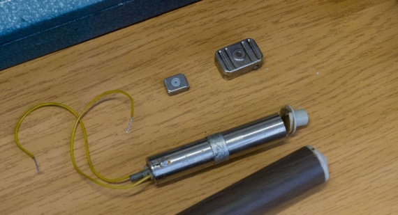 В стенах сверлились тонкие тоннели и туда засовывались вот такие жучки, работающие на частоте 940-980 МГц. Микрофон здесь — на конце трубки:
