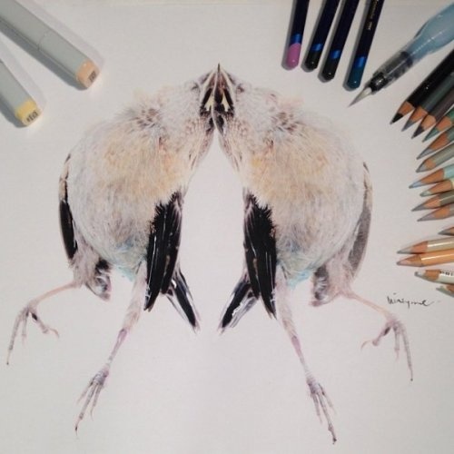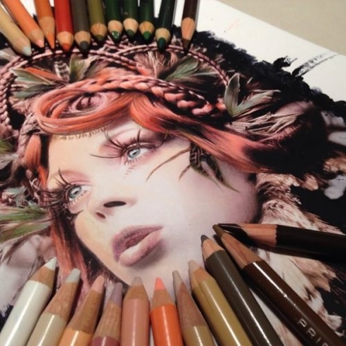 Для своего творчества талантливая девушка использует преимущественно только цветные карандаши, лишь иногда пользуясь маркерами и акриловыми красками. Готовые работы она фотографирует с аккуратно разложенными рядом с рисунком «инструментами» и выкладывает на своей страничке в Инстаграм.