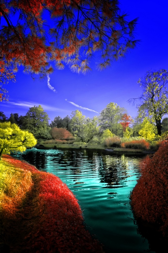 Диапазон инфракрасного света не виден человеческому глазу, поэтому через эти фотографии можно увидеть привычный мир в ярких и необычных цветах. Привычный мир превращается в красивую сюрреалистическую сказку.