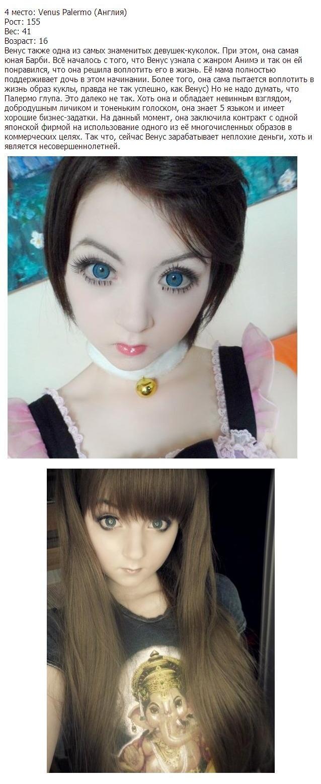 7 место вообще не могу понять чего там кукольного! Дакота Роуз и Венус Палермо всяко круче. А 1 место это тюнингованая кукла.