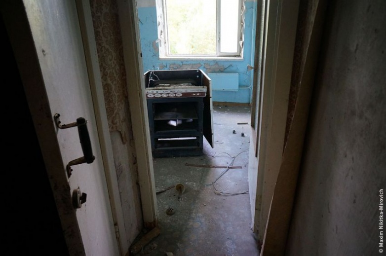 Кухня. Плита также раскурочена до основания. Кстати, во всей Припяти кухонные плиты были электрическими.