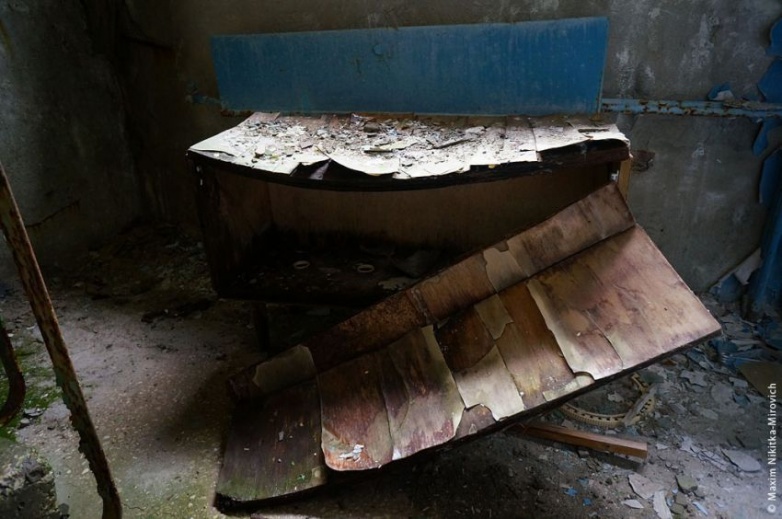 Скорее всего, это что-то вроде тумбочки для обуви, либо нижняя часть трюмо. Я когда-то в детстве видел что-то подобное, но не могу вспомнить, что это было. Кстати, это очень интересное ощущение часто возникало у меня в Припяти — словно вчерашний день не пропал в одну секунду, а остался где-то в виде целого и законченного мира — вместе с вещами, запахами и звуками — и теперь медленно уходит в небытие, распадаясь на части.
