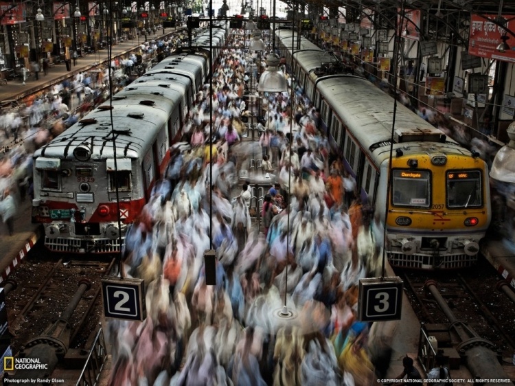 Пассажиры столпились на платформах вокзала в Мумбаи, крупнейшем городе Индии
