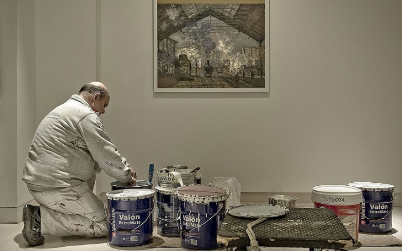 20. Четыре часа дня: Дани Позо. Художник готовит краски и смеси на фоне картины Моне накануне выставки импрессионистов в Мадриде. (Dani Pozo)