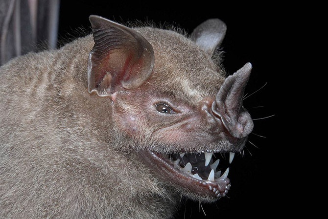 Да, эта летучая мышь (Artibeus planirostris) питается фруктами, а острые зубы помогают ухватить крупные плоды.