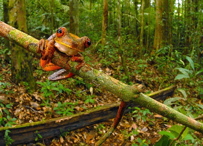 Красивая древесная лягушка (Hypsiboas geographicus). Она одна из 46 видов лягушек, найденных в ходе научной экспедиции, включая шесть видов лягушек, которые могут быть новыми для науки.