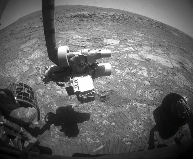 Марсоход «Оппортьюнити» НАСА собирает данные в свой 3412-й сол пребывания на поверхности Марса, 29 августа 2013 года.