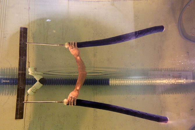 Студент держит роботизированного угря в Новоорлеанском университете, 2 октября 2012 года. Угорь способен легко маневрировать в опасных водах в поисках подводных мин, оставаясь незаметным для радаров.