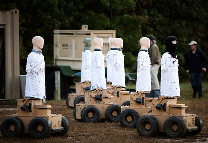 Представители австралийской компании Marathon презентуют роботизированные подвижные мишени Robotic Moving Targets на базе морской пехоты США «Квантико», штат Виргиния, 24 сентября 2013 года.