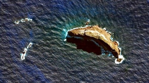 Виды на это место, запечатлённые со спутника, также поражают своей красотой, так как создаётся впечатление, что подводный водопад бежит прямо с береговой линии этого тропического рая. Если смотреть под другим углом, океан выглядит потрясающей гаммой зелёных, голубых и белых оттенков, которые создают ложное впечатление, что воды океана резко несутся вниз, прямо как бушующий водопад. Песок, являющийся светлоокрашенной частью воды, создаёт в этом месте настоящее магическое представление. Течение, образованное волнами, разбивающимися об эту специфическую точку острова, рассеивает песок, создавая впечатление естественного водопада, из-за того, что отступающие волны тянут песок вниз за собой. Если можно так выразиться, это на самом деле подводный водопад, просто он больше похож на песочные часы, чем на типичный водопад со срывающимся вниз потоком воды.