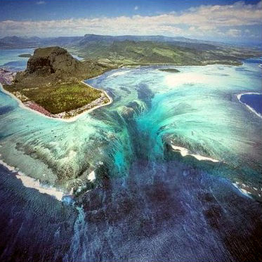 Маврикий является островным государством, официально называющимся Республика Маврикий, или по-французски, République de Maurice. Маврикий расположен в Индийском океане примерно в 2 000 километрах от юго-восточного побережья африканского континента. Увлекательную иллюзию, известную как Подводный водопад можно найти на юго-западной точке острова. Если смотреть с воздуха, сток песка и илистых отложений создаёт иллюзию подводного водопада. Визуально обманчивое впечатление просто захватывает дух, если смотреть с воздуха. На самом деле, на эту иллюзию можно посмотреть даже на Google Maps.