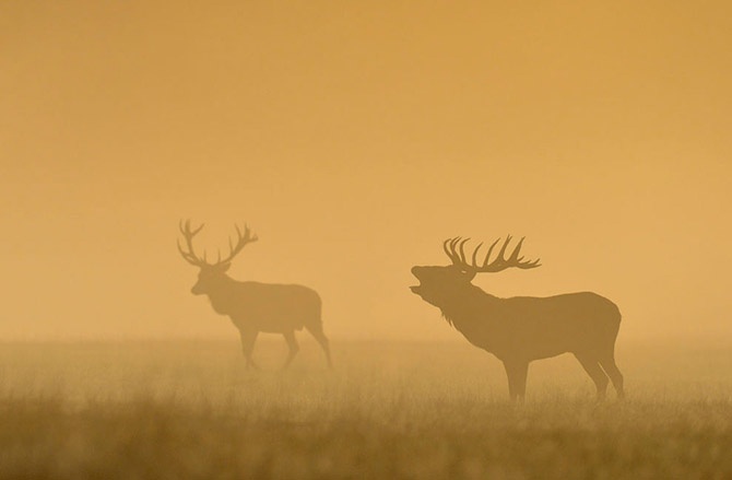 Олени туманным утром в Ричмонд-парке на юго-западе Лондона, 27 сентября 2013.