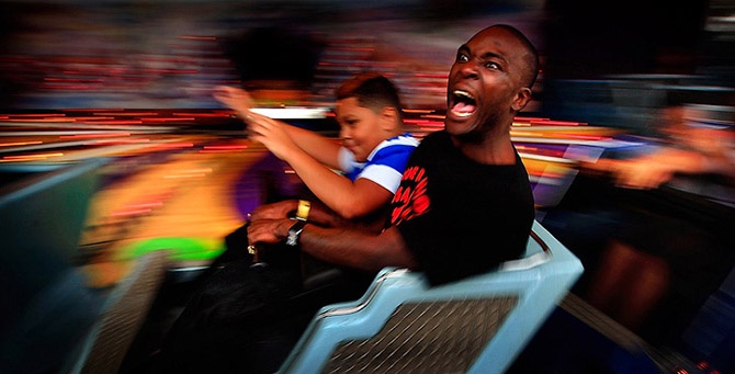На аттракционах во время ярмарки Mid-South Fair в Сауфхэвене, Миссисипи, 29 сентября 2013.