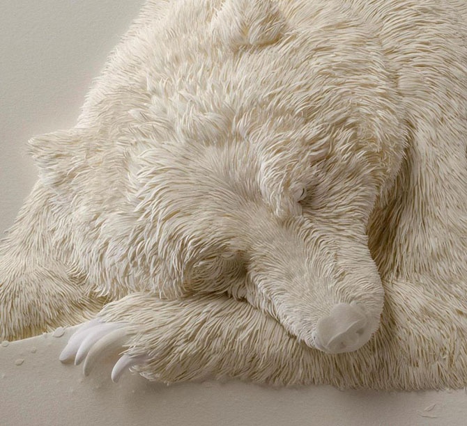 Канадец Кэлвин Николлс вырезает из бумаги удивительно натуральных зверей уже почти тридцать лет и не собирается останавливаться. Его все еще заводит то, как белые листы обретают текстуру, форму и жизнь. Можно представить себе, насколько кропотливо приходится работать Кэлвину над каждым своим произведением — видны каждое перышко, каждая шерстинка