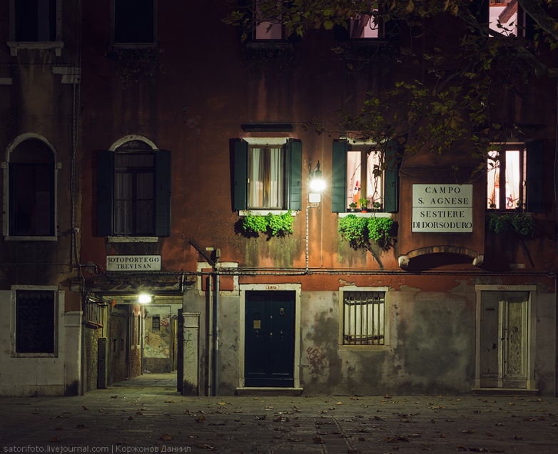 А когда наступает вечер — Венеция вновь сменяет маску. Узкие каменные проходы, отсутствие зелени, толпы людей перестают раздражать. В шумной, спокойной суете вечера чувствуешь себя намного легче, роднее. Город не отталкивает уже, а притягивает и расслабляет.