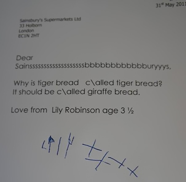 15. Одна девочка (3,5 года) отправила в компанию «Sainsbury’s» предложение переименовать «тигриный хлеб» в «жирафий хлеб» (это местная разновидность выпечки).