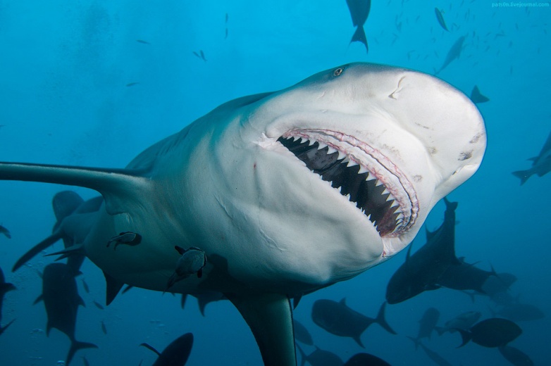 Короткохвостые серые акулы. Быстрые и активные акулы встречаются в одиночку, парами или слабо организованными группами, включающими до сотни особей: