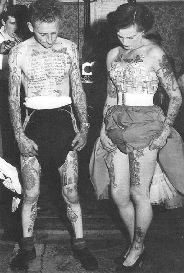 Члены Бристольского клуба татуировок. Великобритания, 1950 г