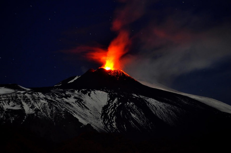 Самый высокий действующий вулкан в Европе Этна начал свое извержение. Небо на восточном побережье Сицилии озарилось желто-красными огнями. Впрочем, населенные пункты, которые расположены у подножья горы, были вне опасности. Вулкану уже почти 1 миллион лет, его высота составляет 3 330 метров, и он до сих пор растет.