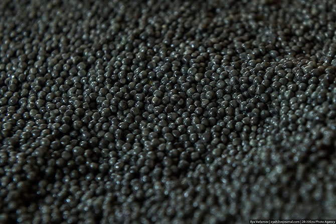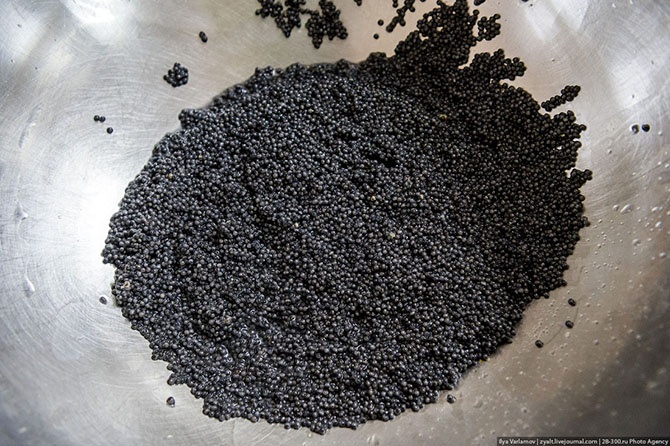 Этап третий: здесь рыба живет до своей смерти. С нее уже можно брать икру. Икру получают круглый год. Стадо осматривают раз 3-4 месяца, за это время она становится из серой черной.