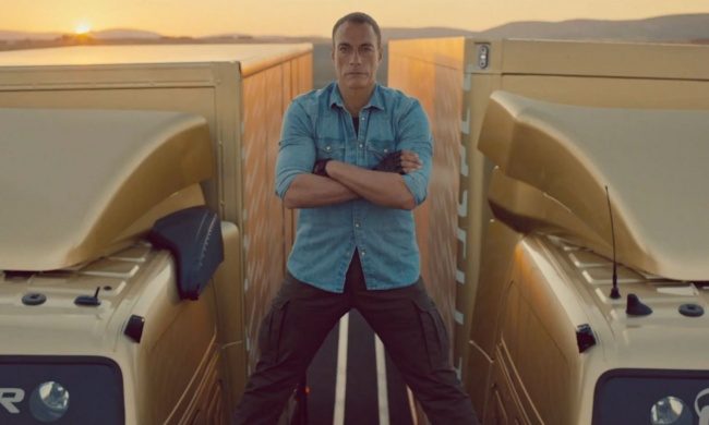 Жан-Клод Ван Дамм показал свой знаменитый шпагат на движущихся параллельно грузовиках Volvo.