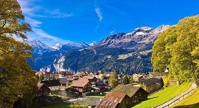 Виды этой швейцарской деревушки в любое время года напоминают сказочные декорации. Коренное население деревни насчитывает немногим более тысячи человек. Но на каждого местного жителя приходится в зависимости от сезона от 5 до 10 туристов, поэтому здесь всегда многолюдно. Здесь находится знаменитый горнолыжный курорт и удивительная пещера Кригслох, которая, как говорят, может предсказывать приближение войны. Ездить на обычных автомобилях здесь запрещено, чтобы не портить чистейший горный воздух. Зато к услугам туристов всегда есть множество экологически чистых электромобилей.