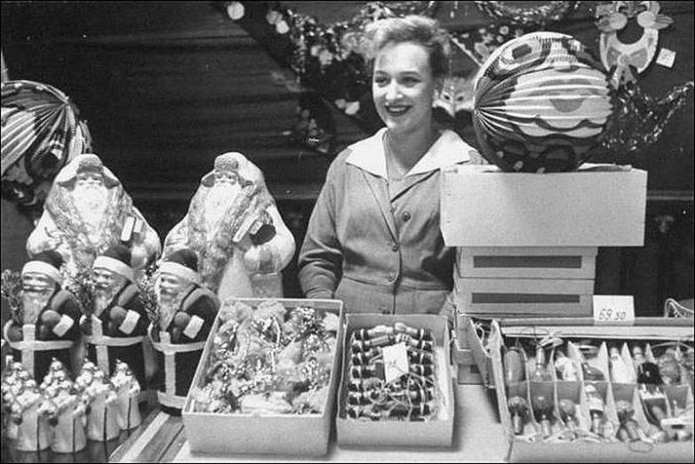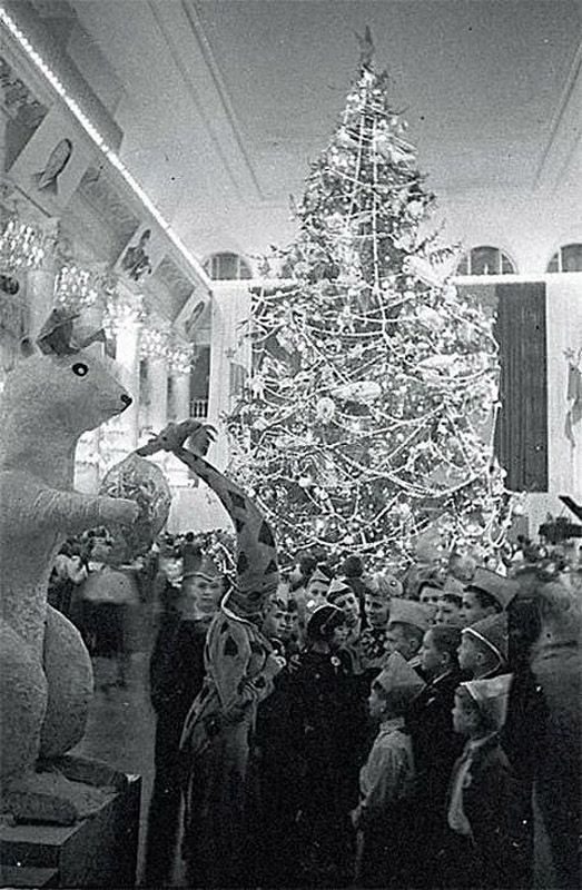 14. Во-вторых, нужно было обеспечить ребенка билетом на Новогоднюю елку, подарком, костюмом снежники из марли или нарядом зайчика и мандаринами. Подарок, в составе которого были и карамельки, и яблоки, и грецкие орехи, предоставлял родителям профком. Мечтой каждого ребенка было попасть на главную елку страны – сначала в Колонный зал Дома Союзов, а после 1954 года – на Кремлевскую елку.