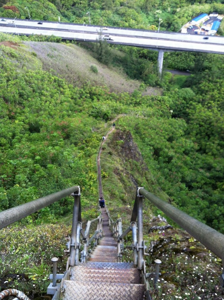 На Гавайях, острове Оаху расположена самая длинная лестница Хайку. Лестница поднимается вверх на высоту практически 900 метров, у неё насчитывается примерно 4000 ступенек. Взобравшись на самый верх лестницы, можно увидеть завораживающие пейзажи.
