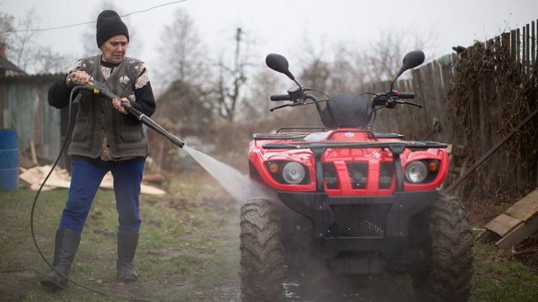 В рюкзак цвета фуксии Анна Александровна складывает газеты — «Лечебник», «Весть», заказные письма, квитанции. Выводит из гаража квадроцикл: «Раньше, в молодости, у меня лошадь была, но этот транспорт куда удобнее. Кормить не надо, возни меньше. Летом он у меня вообще без горюшка, а зимой подмерзает, надо заводиловку дергать — ну шнурок такой у него на пузе, дергалка. Я уже знаю, когда надо колесо подкачать, когда сиденье надо сымать и подключать проводки к нему, чтобы зарядился. А после работы я его всегда мою, в гараж чтоб грязным поставила — никогда, боже упаси. Ухаживаю за ним, как за ребенком».
