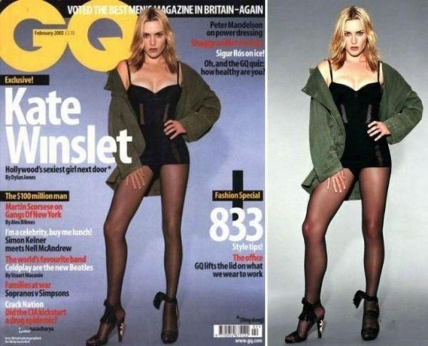 Январь, 2003: GQ сделали ноги Кэйт Уинслет более худыми. Она была очень недовольна и сказала, что толщина ног была уменьшена на треть.