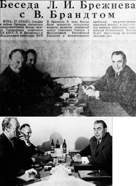 Сентябрь, 1971: Канцлер ФРГ Вилли Брандт на встрече с Леонидом Брежневом.