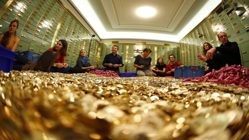 Процедура передачи подписей сопровождалась художественной акцией. В Берне на площади из грузовика были высыпаны 8 миллионов медных монеток – по монетке на каждого жителя Швейцарии. Для проведения акции инициаторам БОДа пришлось взять кредит. Затем в банке в течение 10 дней 75 добровольцев вытаскивали монетки из бумажных рулонов. Общий вес мелочи составил 15 тонн.