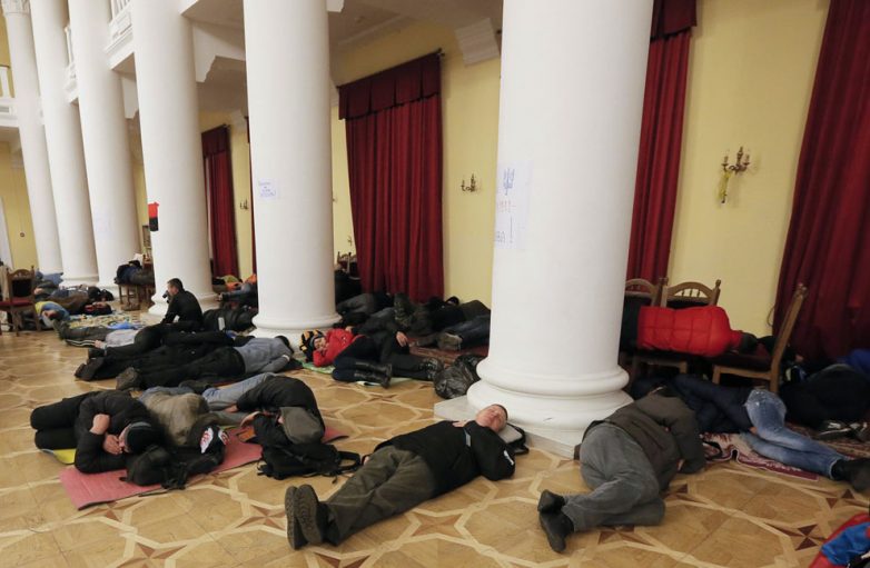 29. Протестующие спят в здании Киевского городского совета.