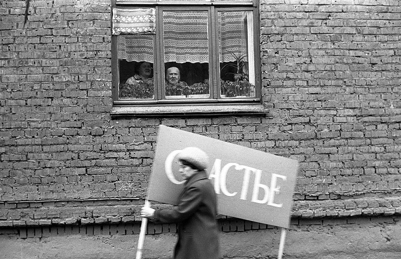 — Человек не может измениться моментально. Мы всё такие же. Какие-то парадоксальные, абсурдные штуки, которые мы видим на этой выставке, их и сейчас навалом. Я как-то шёл в подворотне, а там — «смерть»… Вся в чёрном, косой машет. Ребята какие-то на праздник нарядились, но снимать запретили. Если это всё-таки снять грамотно, то это был бы показатель того, что сейчас кругом происходит.