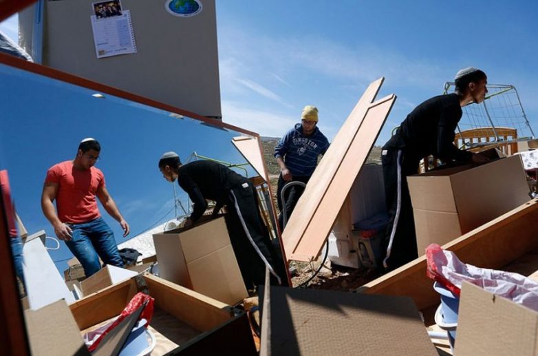 Израильтяне разбирают свои вещи после сноса незаконного поселения. Baz Ratner/Reuters.