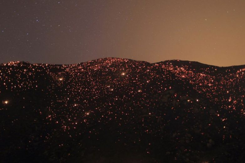 Звездное небо на фоне ночных очагов пожара в 145 км от Лос-Анджелеса. Август 2013. David McNew/Reuters