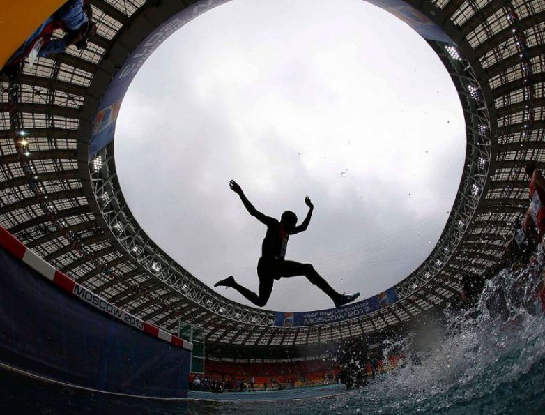 Кенийский спортсмен Paul Kipsiele Koech преодолевает барьер во время забега на 3000 метров, на Чемпионате мира по легкой атлетике в Лужниках. Август 2013. Kai Pfaffenbach/Reuters.