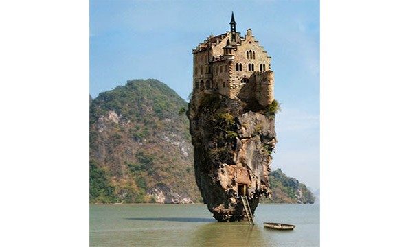 Эта фотография одна из тех, интерес к которым, то возрастает, то угасает время от времени. Вообще-то это фотография немецкого замка, совмещённая с фотографией скалистого острова в Таиланде.