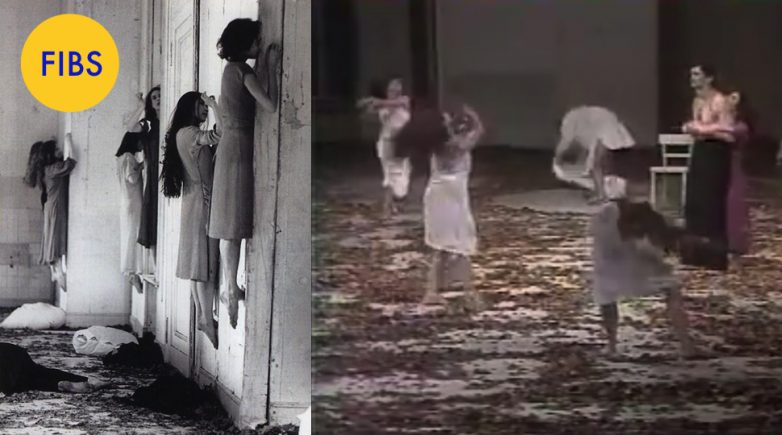 Снимок слева не является каким-то паронормальным явлением, происходившим в психбольнице советских времён. Это танцевальное шоу Пины Бауш под названием «Синяя Борода». А скриншот справа – это ещё один снимок спектакля, сделанный в 1977 году.