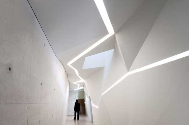 Внутри можно найти большую библиотеку в виде амфитеатра, целый этаж посвященный развлечениям с полем для футзала, беговой дорожкой, настольным теннисом, и даже местом для проведения концертов.
