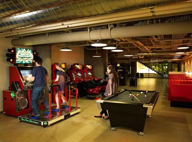 Здесь можно найти места для частного и совместного отдыха. Кроме основной деятельности, работники могут играть в игры, например настольный теннис, спустится по горке с одного этажа на другой и перекусить на рабочем месте.