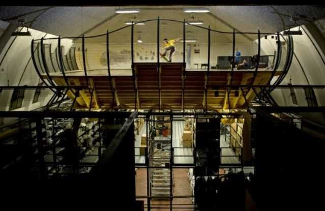 В конце концов, было решено построить большую рампу для скейтборда, которая, кажется, висит в воздухе.