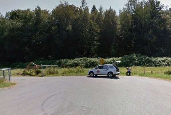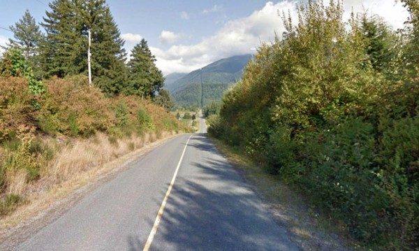 Дорога Henderson Road, Британская Колумбия, Канада. По дороге проходит граница между Канадой (слева) и США (справа).