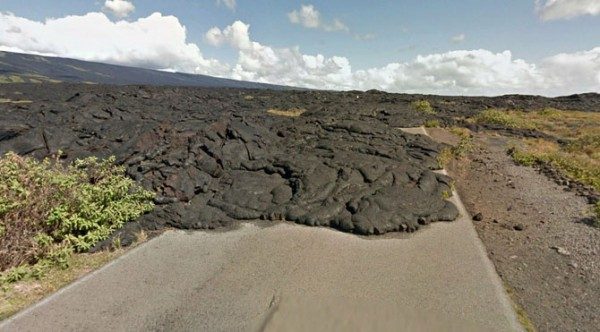 Лава вулкана Килауэа на участке дороги Chain of Craters Road, Гавайи.