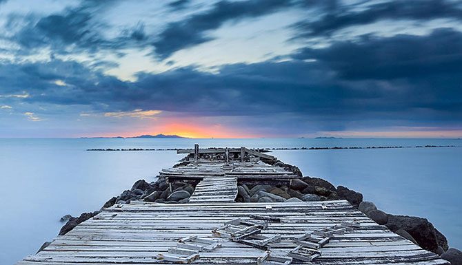 Старый причал Денарау на Фиджи, где Земля заканчивается и садится солнце.