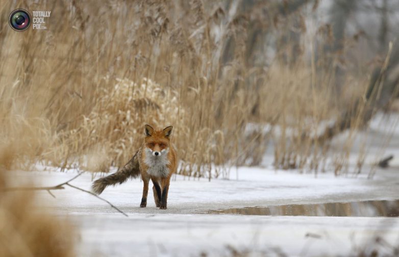 Лиса бежит по Налибокской пуще в Беларуси. (VASILY FEDOSENKO/REUTERS)