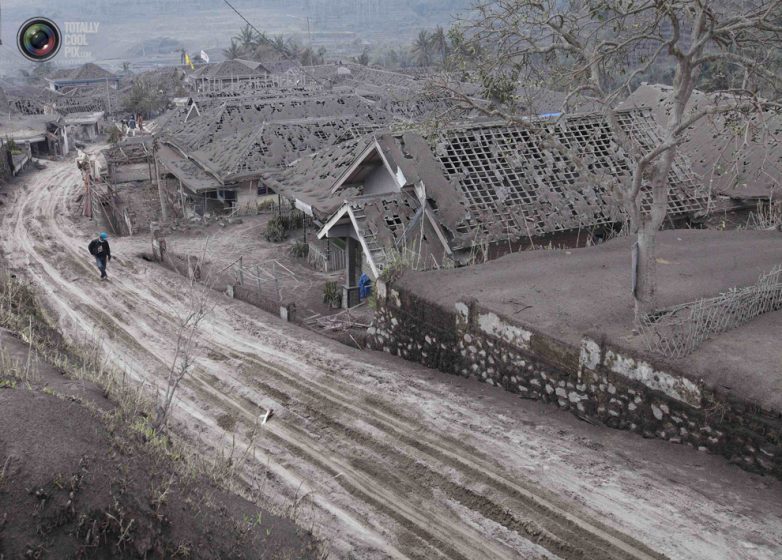 Дома, усыпанные пеплом вулкана Келуд, в округе Маланг, Восточная Ява, Индонезия. (DWI OBLO/REUTERS)