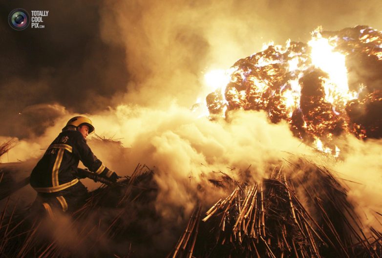 Пожарный тушит огонь на бумажной фабрике в Чандэ, Китай. (CHINA STRINGER NETWORK/REUTERS)